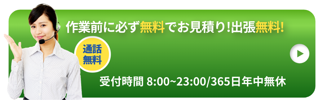 - 作業スタッフが出張前であればキャンセルは無料で承っております。出張途中でのキャンセルの場合、出張料が発生いたしますので、詳細を料金表ページでご確認の上、すぐにお電話にてご連絡下さい。